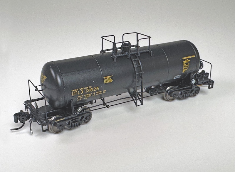 For over 25 years, Athearn’s Genesis brand stands at the top of its product offerings. Now in stores is Athearn’s first Genesis-level freight car for N scale – a 13,000 gallon capacity acid tank car. Prototypes for these distinctive cars have roamed the rails since the 1980s to the present day all across North America. Offered in two different body styles, with different top platforms and end sills, each car comes bristling with detail, including flexible rubber train line air hoses, two styles of underbody brake rigging, separately applied metal grab irons and handrails, etched walkway platforms, coupler cut levers, and Type F “Double shelf” knuckle couplers – a first for N scale. Machined metal wheelsets allow these cars to navigate rail as small as Code 40.