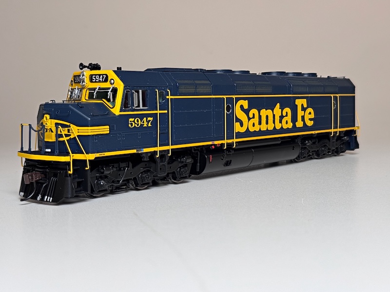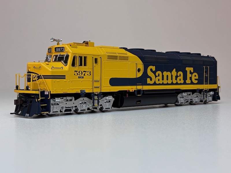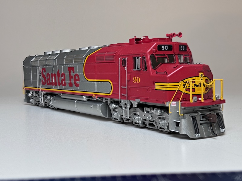 Now available in HO scale are EMD F45 and FP45 locomotives from Athearn’s premium Genesis product line.  Athearn’s model of FP45 Santa Fe 90 represents the “SuperFleet” iteration of the classic red warbonnet paint scheme which was reintroduced in 1989 by Mike Haverty – Santa Fe’s CEO at the time.
