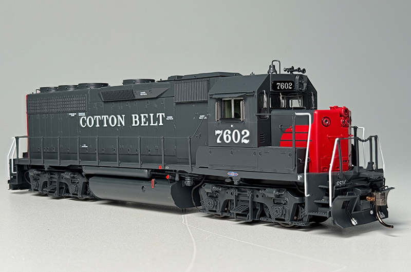 The St. Louis Southwestern Railway – known informally as the Cotton Belt, was a wholly owned subsidiary of the Southern Pacific Railroad. Until the 1990s, SSW owned the only non-Dash-2 GP40s on the entire Southern Pacific system. Delivered in 1966, Cotton Belt’s GP40s were numbered 7600-7607 and featured the standard SP warning light package and an “extended-vision” window arrangement enabled by a thinner vertical window post ahead of the engineer’s seating position.