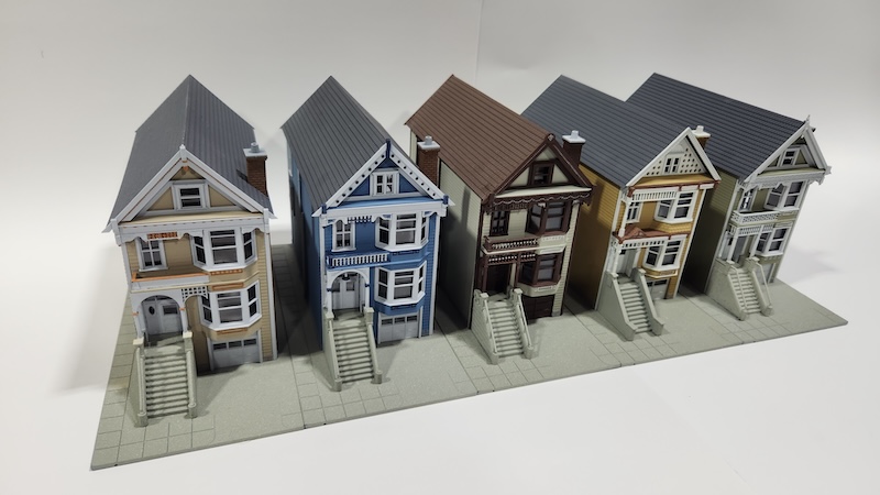 HO – New offerings displayed from Walthers’ Cornerstone structure line include a brick Tudor-style single family home, a large through-truss bridge with roadway, a short beam wooden bridge ideal for spanning small creeks, and several ornate Victorian-style 3-story homes