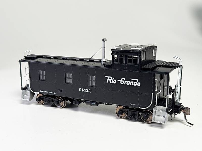 Finished in black, Rio Grande 01427 represents the “As-Built” cars with wooden multi-pane window sashes and wand-activated LED interior lighting.